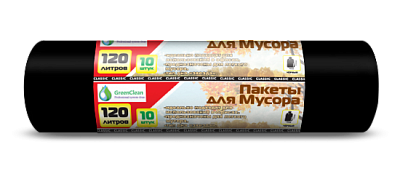 Мы предлагаем вам приобрести пакеты для мусора объемом 120 литров. Эти пакеты изготовлены из полиэтилена низкой плотности и имеют толщину 12 мкм. В упаковке содержится 10 штук черных пакетов.