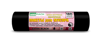 Мешки для мусора 180 литров, 50 мкм, в рулоне 10 шт, ПВД, 2 слоя, прочные, строительные, черные, 93х110 см, EXTRA Black