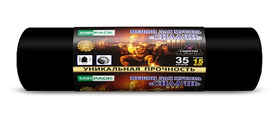 Мешки для мусора 35 литров, 30 мкм, ПВД, в рулоне 15 штук, черные, 50х64 см