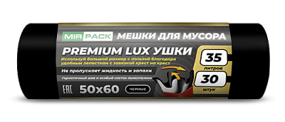 Мешки для мусора с ушками 35 литров, 30 шт, 20 мкм, черные, 50*60 см, серии «Premium Lux Ушки»