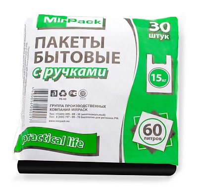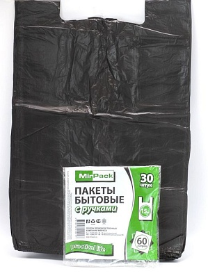 Мешки для мусора с ручками 60 литров, 30 шт. ПНД, 13 мкм