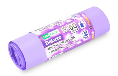 Мешки для мусора с завязками 60 л, 40 мкм, ПВД, 10 шт 60*70 см, фиолетовые, "DELUXE"