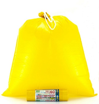 Мешки для мусора с завязками 60 литров, 35 мкм, 10 штук, ПCД, желтые