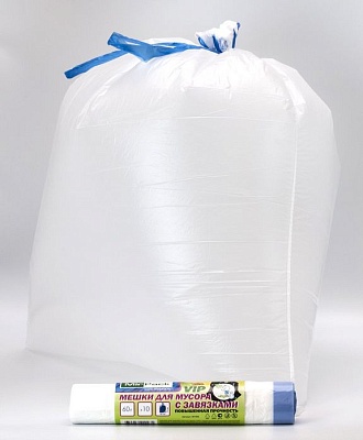 Пакеты для мусора с завязками 60 л, 15 мкм, ПНД, белые, 10 шт